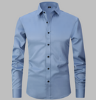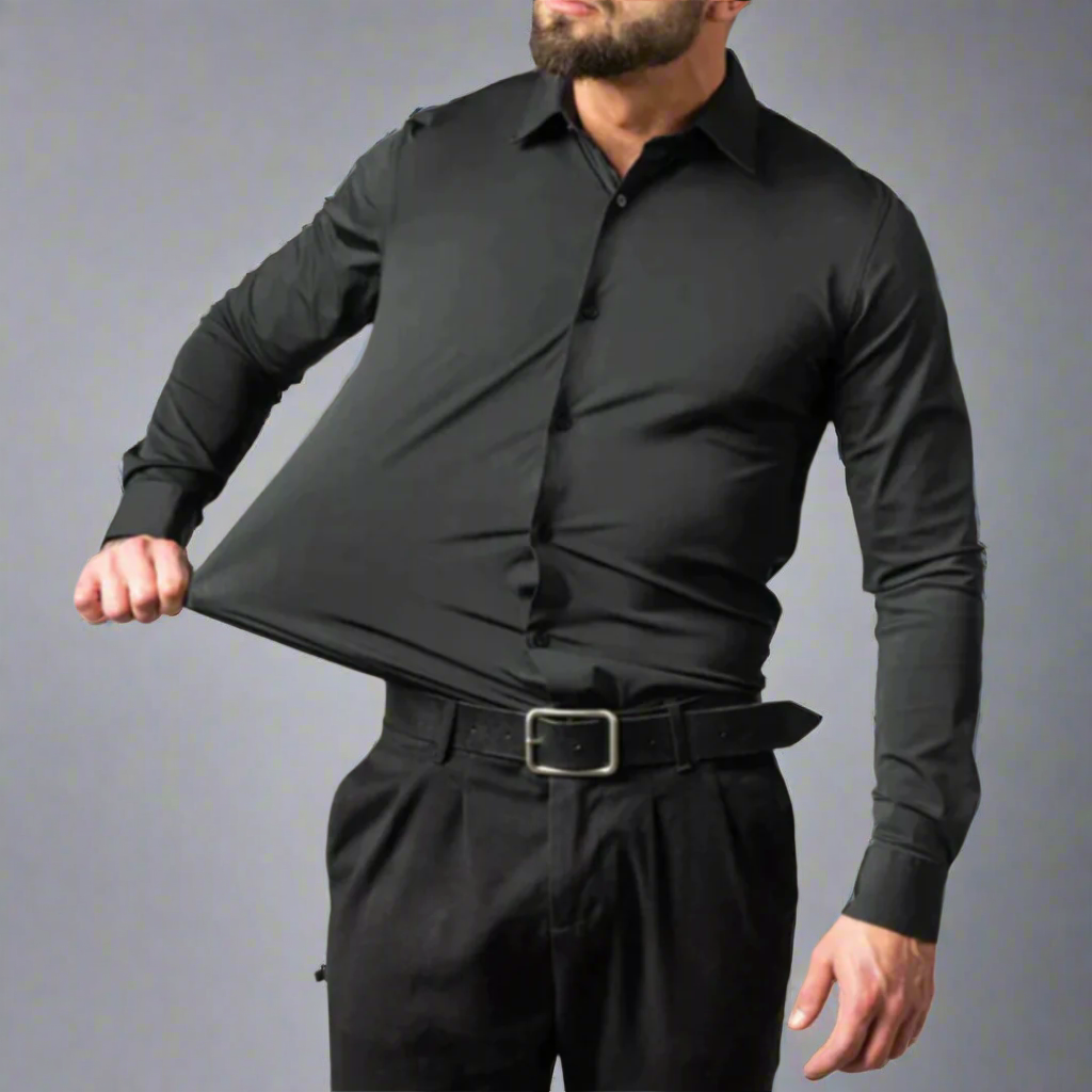 يوفر هذا القميص حرية حركة مثالية بفضل قماشه المرن. تصميمه الضيق يضمن مظهرًا أنيقًا في جميع المناسبات. سهل العناية، يحتفظ بمظهره المثالي بعد كل غسلة.