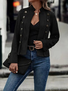 • أزرار زخرفية على الأمام والأكمام لأسلوب جريء.
