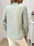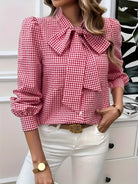 Tato blůza má nadčasový kostkovaný vzor zdobený elegantní mašlí. Její dlouhé rukávy ji činí ideální pro všechna roční období. Snadno se kombinuje, hodí se jak pro neformální, tak profesionální příležitosti.