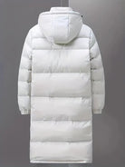 Denne lange damejakke med hætte tilbyder en omsluttende varme, samtidig med at den bevarer et moderne og urbant udseende. Designet til at klare kolde dage, kombinerer den komfort, beskyttelse og elegance under alle omstændigheder. Dens enkle design passer nemt til dine vinteroutfits for en chic og afslappet stil.