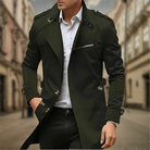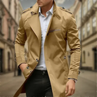 Denne lange herrefrakke kombinerer elegance og selvtillid. Dens strukturerede snit og fine detaljer giver et chic udseende i enhver situation. Perfekt til overgangsperioden såvel som til kolde dage, kan den bæres både på arbejde og til udflugter.