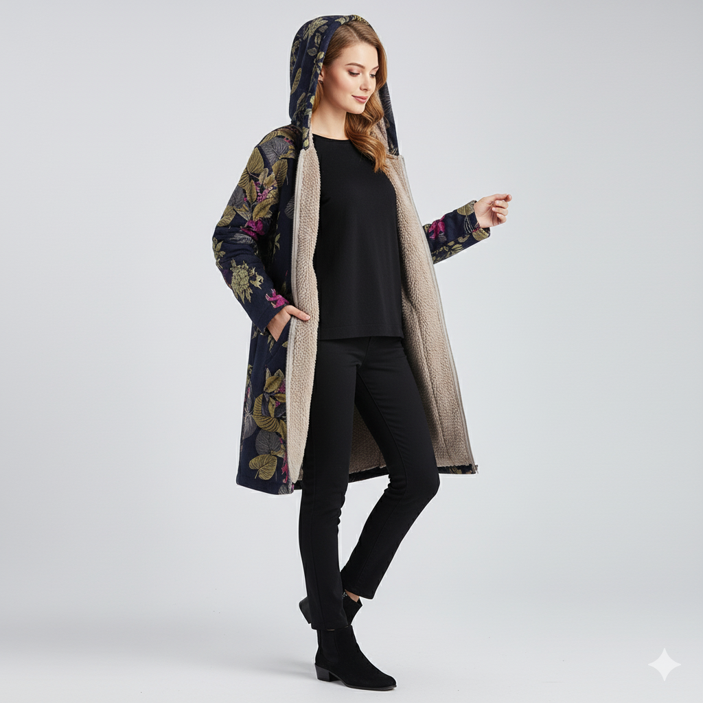 Sanae | Chaqueta de Invierno con Capucha para Mujer — Calidez Suave y Estilo Floral