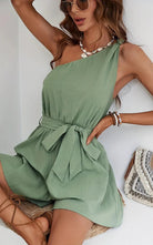 Αυτή η κοντή φόρμα με έναν ώμο προσφέρει μια μοντέρνα και κομψή γραμμή. Ιδανική για ζεστές μέρες, συνδυάζει άνεση και στυλ. Ο ασύμμετρος σχεδιασμός της προσθέτει μια πινελιά πρωτοτυπίας στην γκαρνταρόμπα σας.