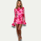 This mid-length dress charms with its delicate floral embroidery and slightly transparent long sleeves. Its open back adds a touch of discreet sensuality, perfect for special occasions. Available in several colors, it adapts to all your desires with elegance.