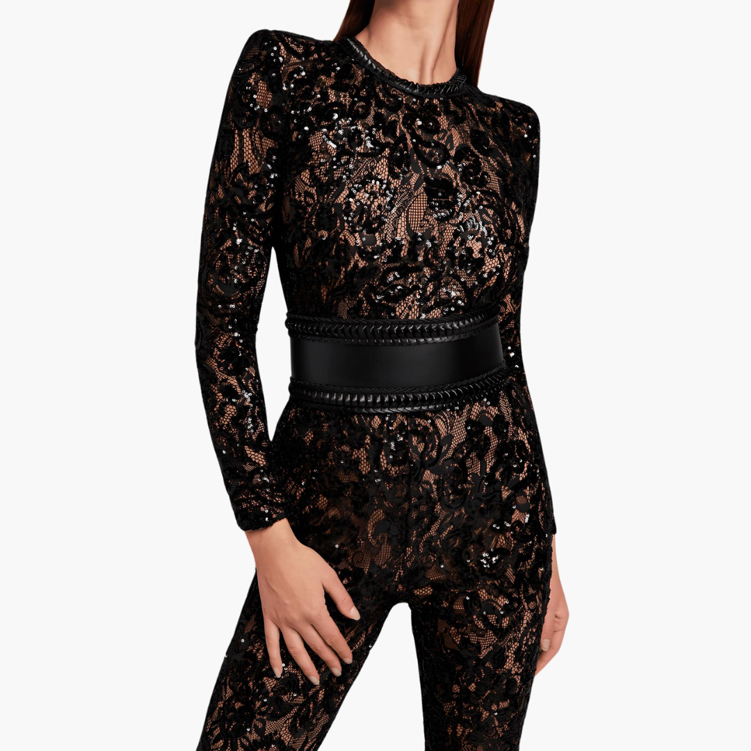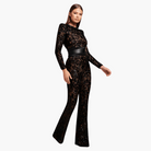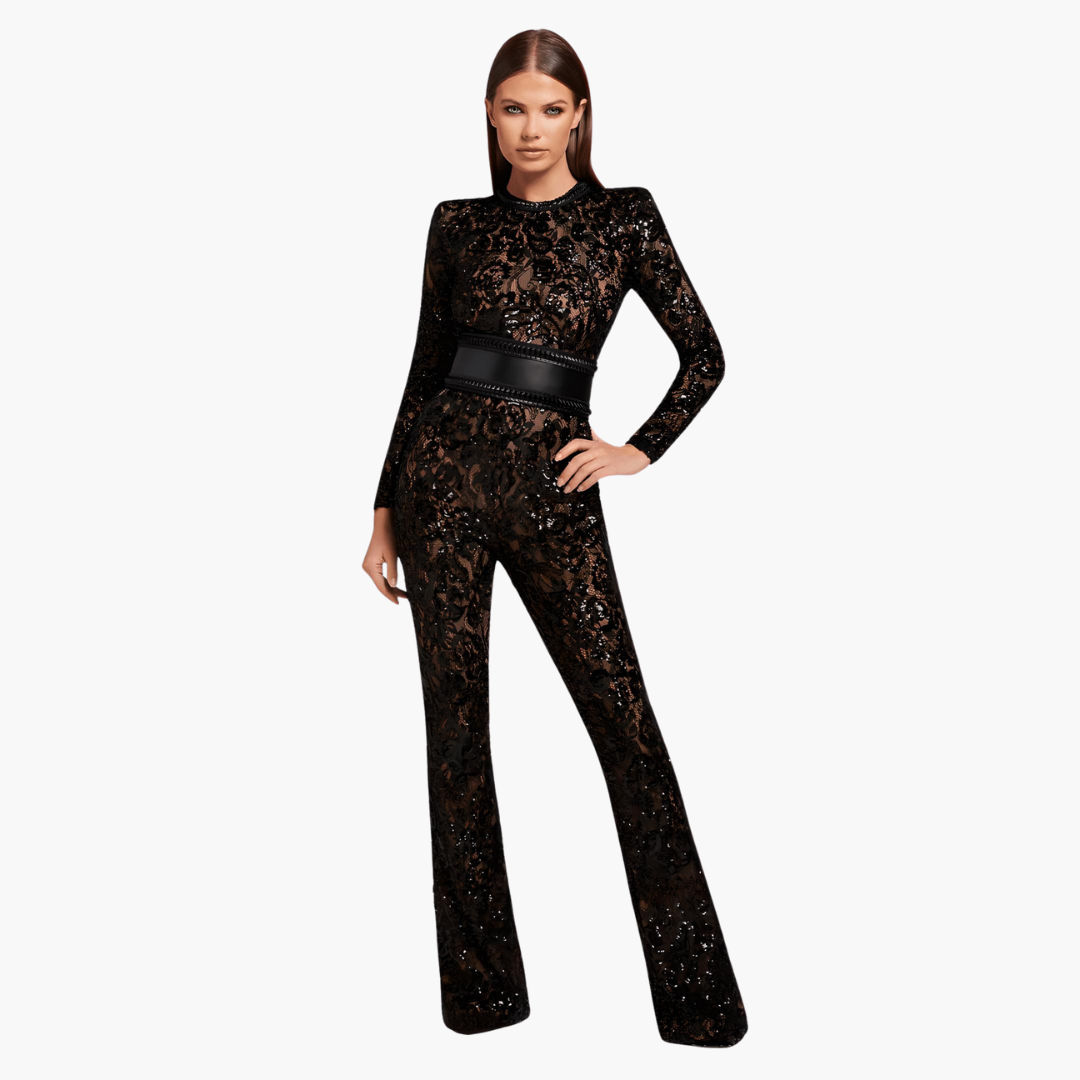 • Elegant design with long sleeves and flared legs.