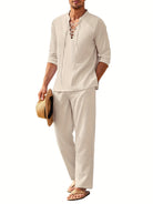 למה לבחור בסט הבוהמייני המפנק ניקולאס – חולצה עם קשירה ומכנסיים קלילים?