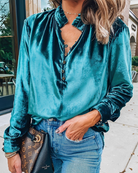 ויויאן | חולצת נשים אלגנטית – צווארון מקומט וכפתור אופנתי