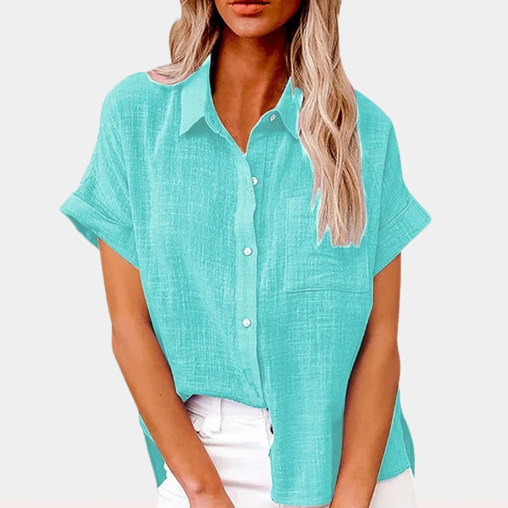ויויאן | חולצת נשים אלגנטית – צווארון מקומט וכפתור אופנתי