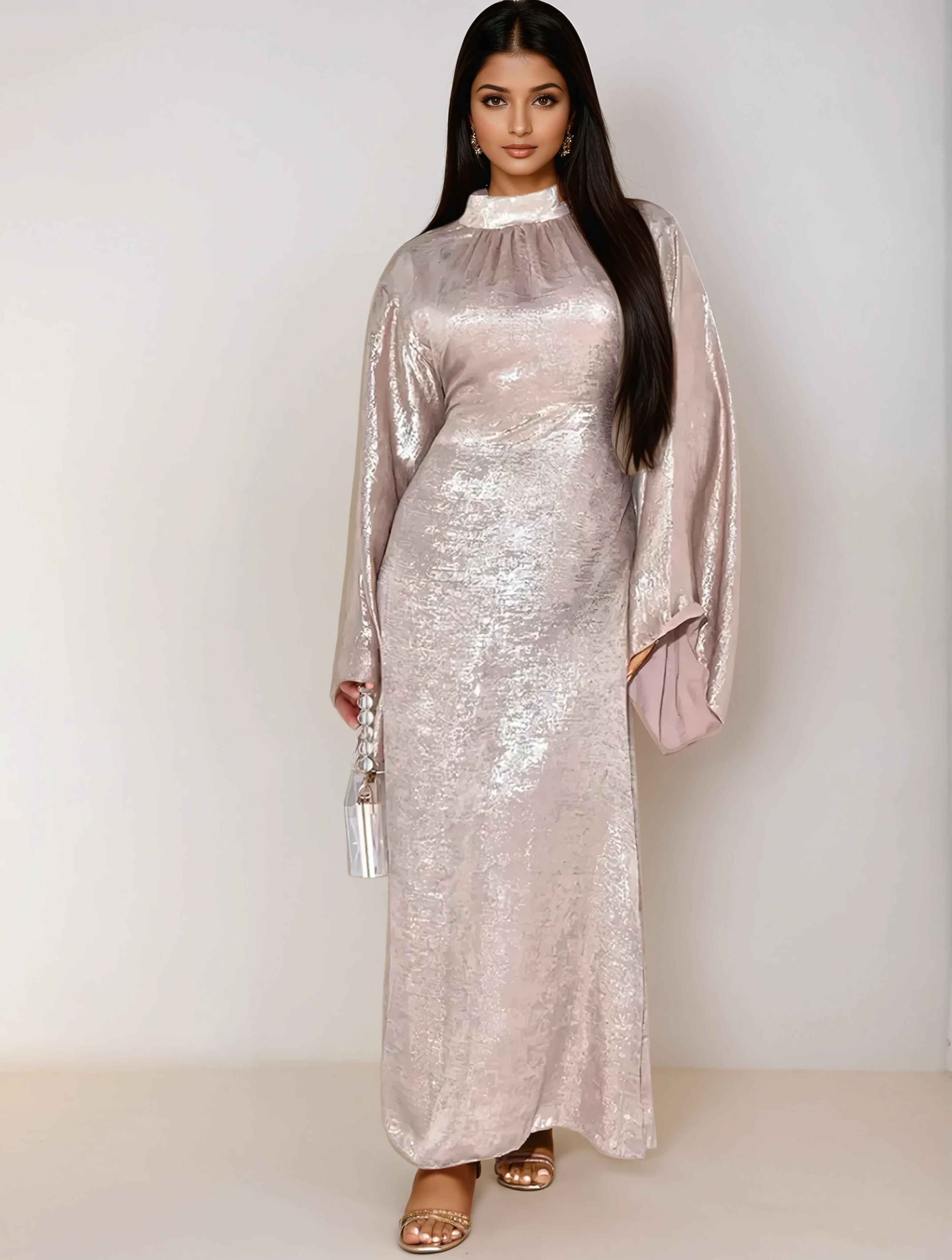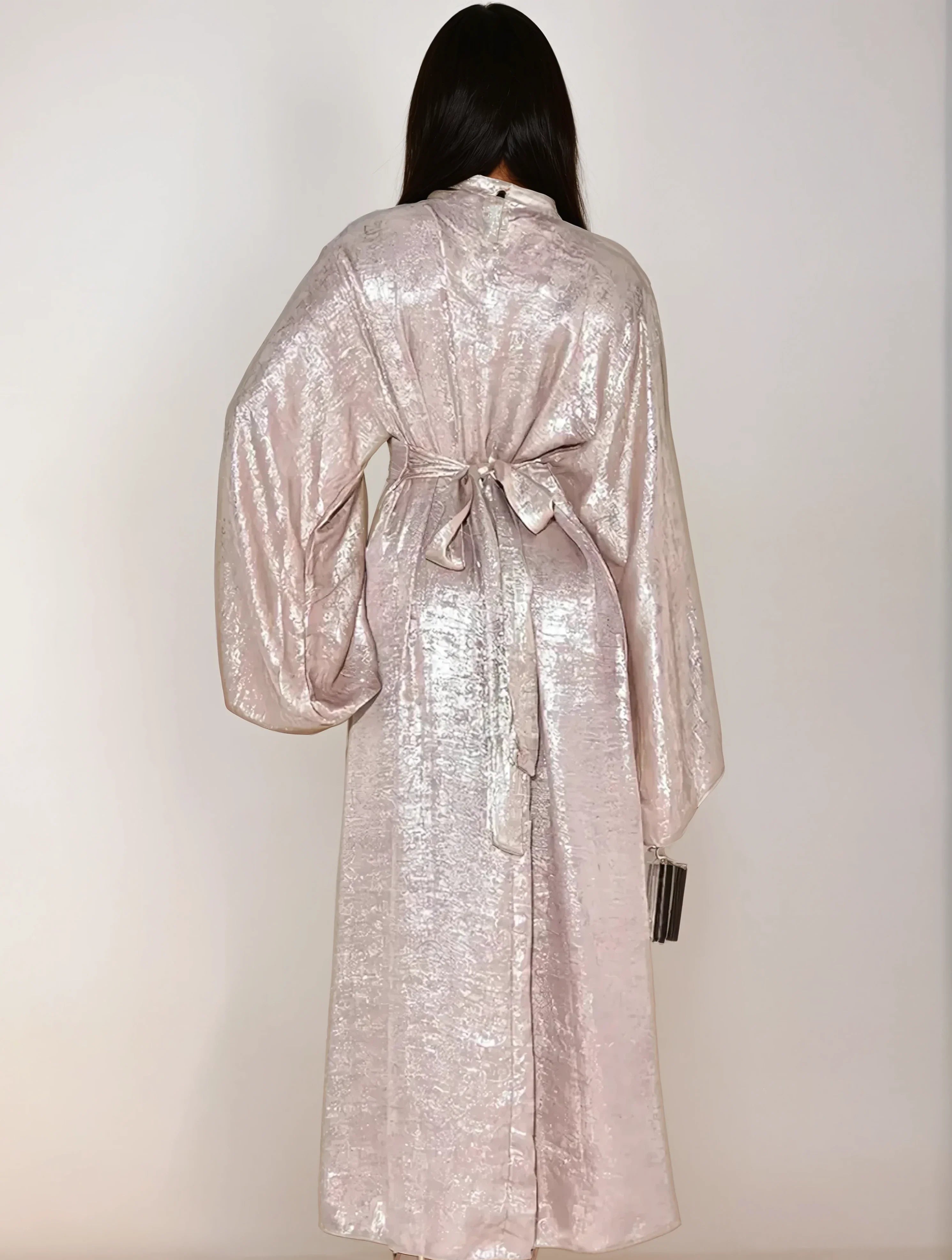 שמלת האביה הזו מציעה סילואט זורם ומעודן. הבד הקל והאופקי מבטיח נוחות אופטימלית. מושלמת לכל האירועים, היא משלבת צניעות וסגנון.