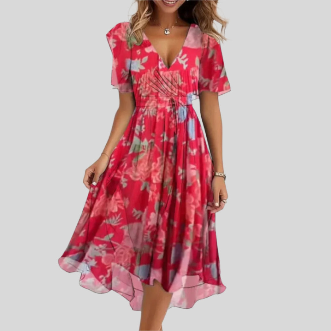 אלודי | שמלת פלואיד עם הדפס פרחים ושרוול בצורת V