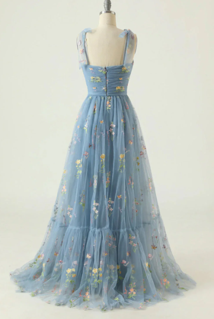 שמלות הבל פרוסות עם רקמה פרחונית עדינה על טול. זמינה בגרסאות קצרות וארוכות, היא מושלמת לאירועים מיוחדים וליציאות קיץ.