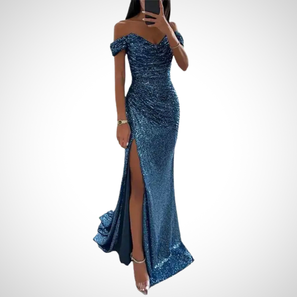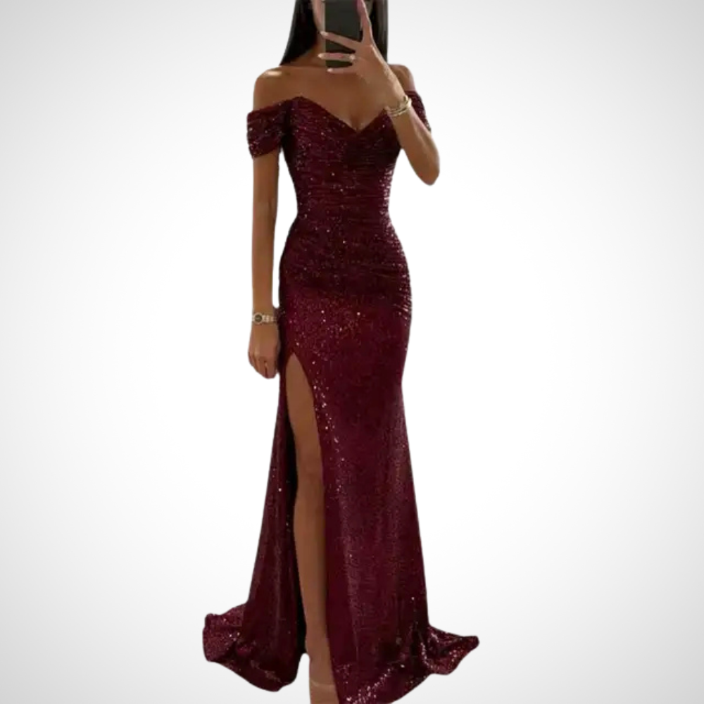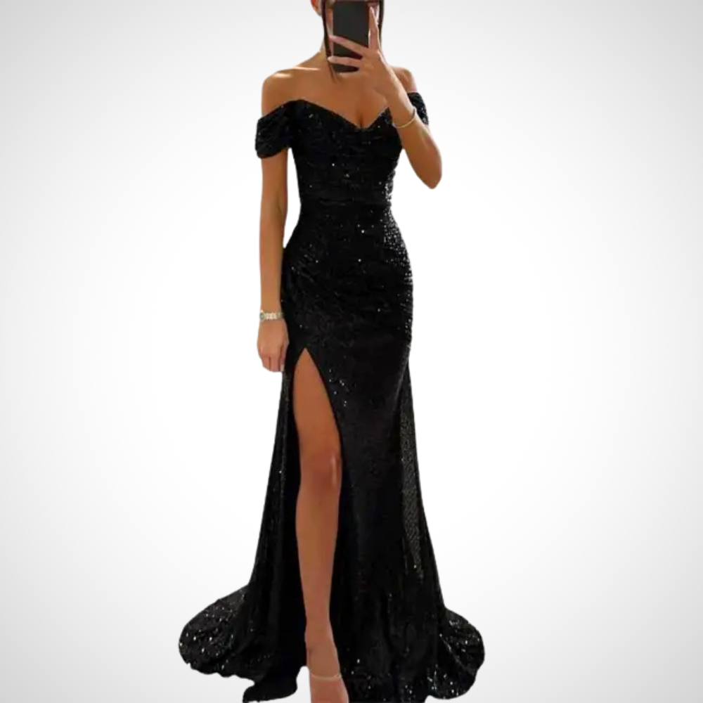 השמלה הארוכה ללא רצועות מציעה דמות זורמת ואֵלֶגָנְטִית. העיצוב הנקי מדגיש את הכתפיים ואת המחשוף. מושלמת לאירועים מיוחדים, היא משלבת נוחות וסגנון.