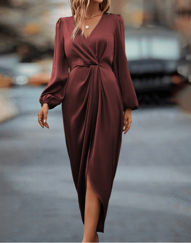 מרגריט | שמלה צולבת שיקית עם שרוולים ארוכים