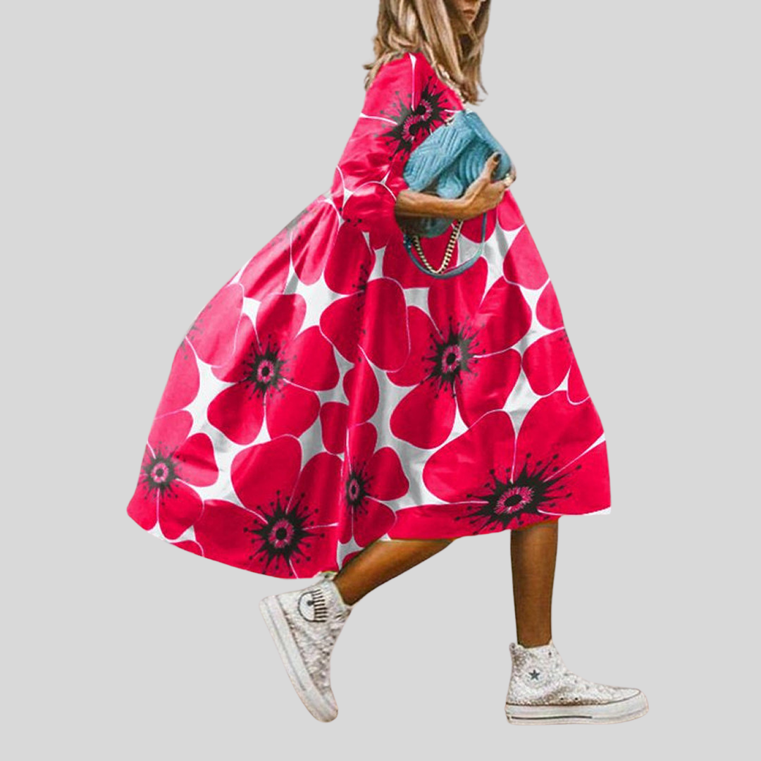 Ez a midi ruha bohém virágmintával rendelkezik. Több színben és méretben elérhető. Tökéletes a nyári napokra.