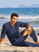 この男性用セットはスタイルと快適さを兼ね備えています。パンツとシャツで構成されており、晴れた日のために最適です。