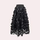 このロングスカートは洗練された女性らしいシルエットを提供します。緑、黒、紫の3色で、さまざまな場面に適しています。