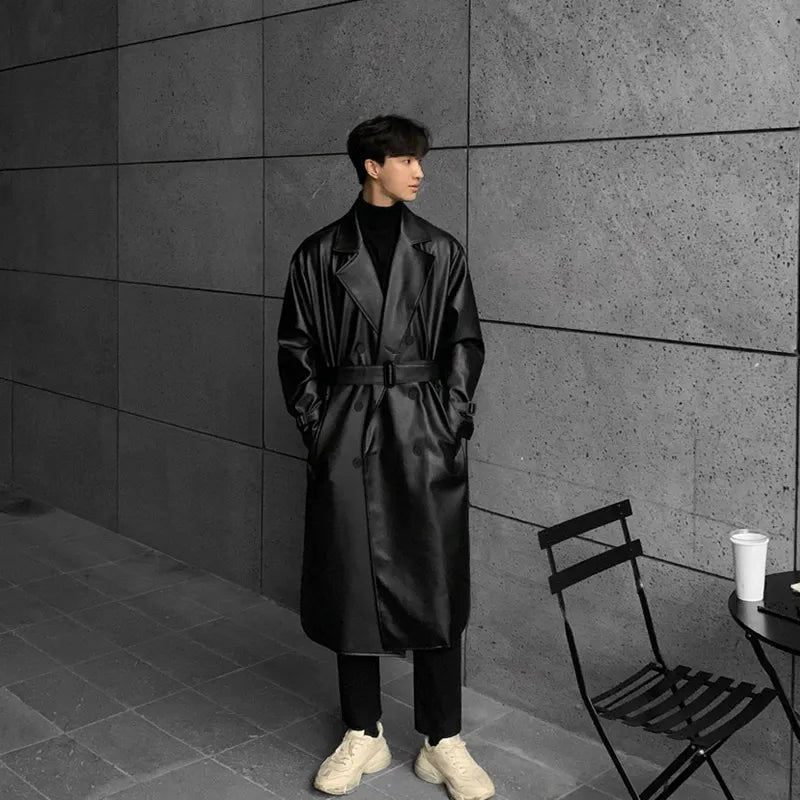 Denne lange frakken er et symbol på maskulin sofistikerthet med et moderne preg. Den rette snittet og det minimalistiske designet gir et distinkt utseende, ideelt for å hevde en moderne stil med enkelhet. Perfekt for vår- og høstsesongen eller kjølige dager, kompletterer den elegant både en avslappet antrekk og et mer formelt look.