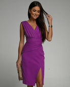 Denne midi-kjolen fenger med sin flatterende V-hals og diskrete splitt, som gir et preg av raffinert eleganse. Den balanserte snittet fremhever silhuetten samtidig som den sikrer optimal komfort. Perfekt for arrangementer og kvelder, kombinerer den stil og uformellhet på en naturlig måte.