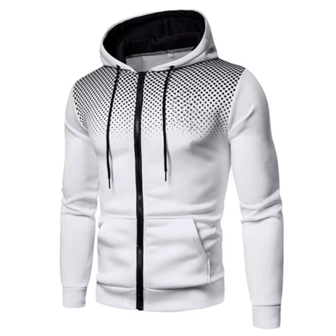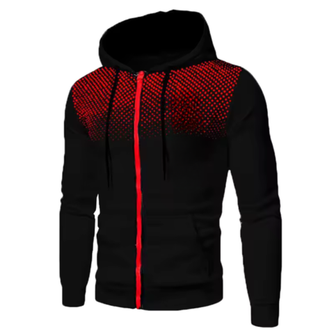 Tento športový komplet spája zipsovú bundu s kapucňou a jogger kalhoty, aby vytvoril koordinovaný outfit, ktorý je ľahko nositeľný každý deň. Prechodové vzory na vrchu dodávajú grafický nádych, ktorý si okamžite všimnete. Kalhoty s nastaviteľným pásom umožňujú prispôsobiť celý outfit ako na relaxáciu, tak na aktívne výlety.
