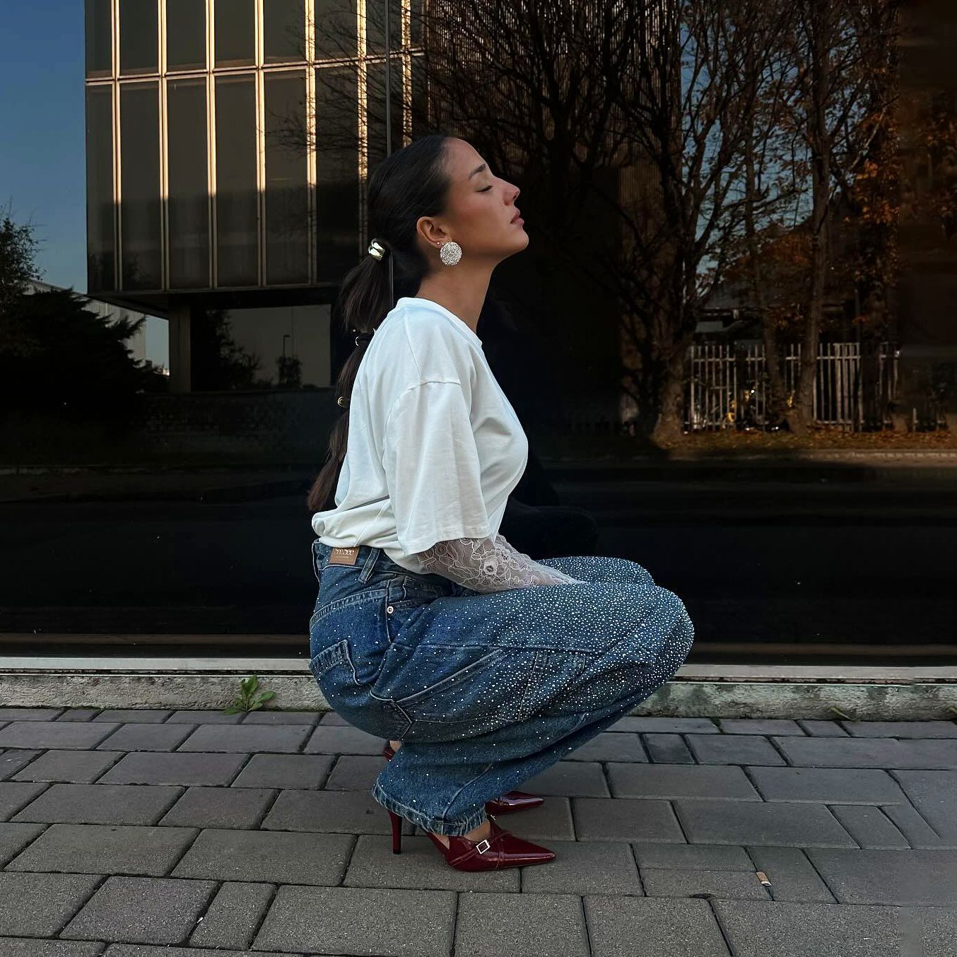 - Detaljer i strass för en sofistikerad stil.