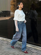 Dessa avslappnade byxor erbjuder en rymlig silhuett och optimal komfort för vardagen. Deras glänsande detaljer ger en diskret elegans. Perfekt för en trendig och originell look.